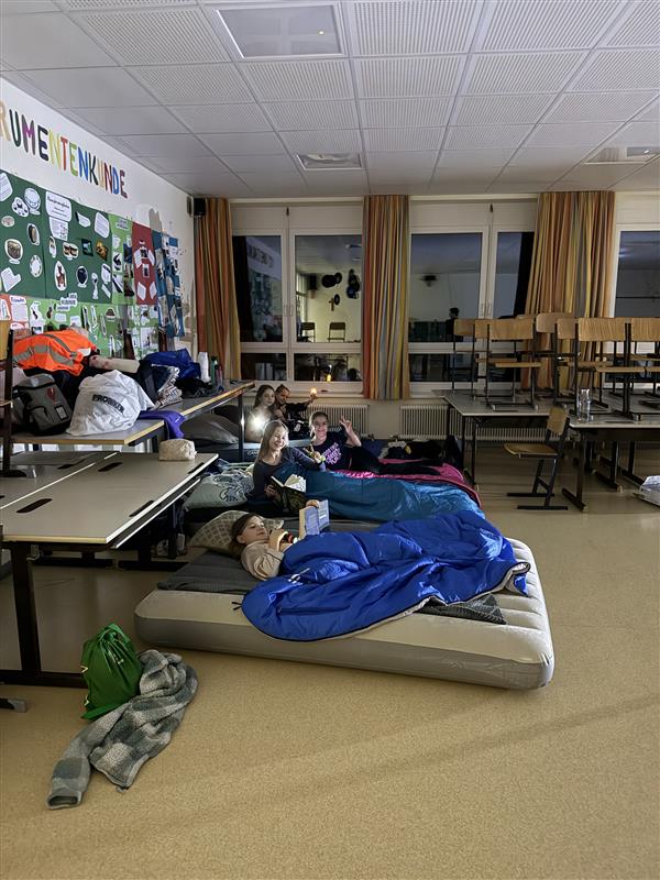 Anschließend wurde noch mit Taschenlampen im eigenen Buch gelesen. Am nächsten Morgen starteten die Schülerinnen und Schüler mit einem gemeinsamen Frühstück in den Tag.
