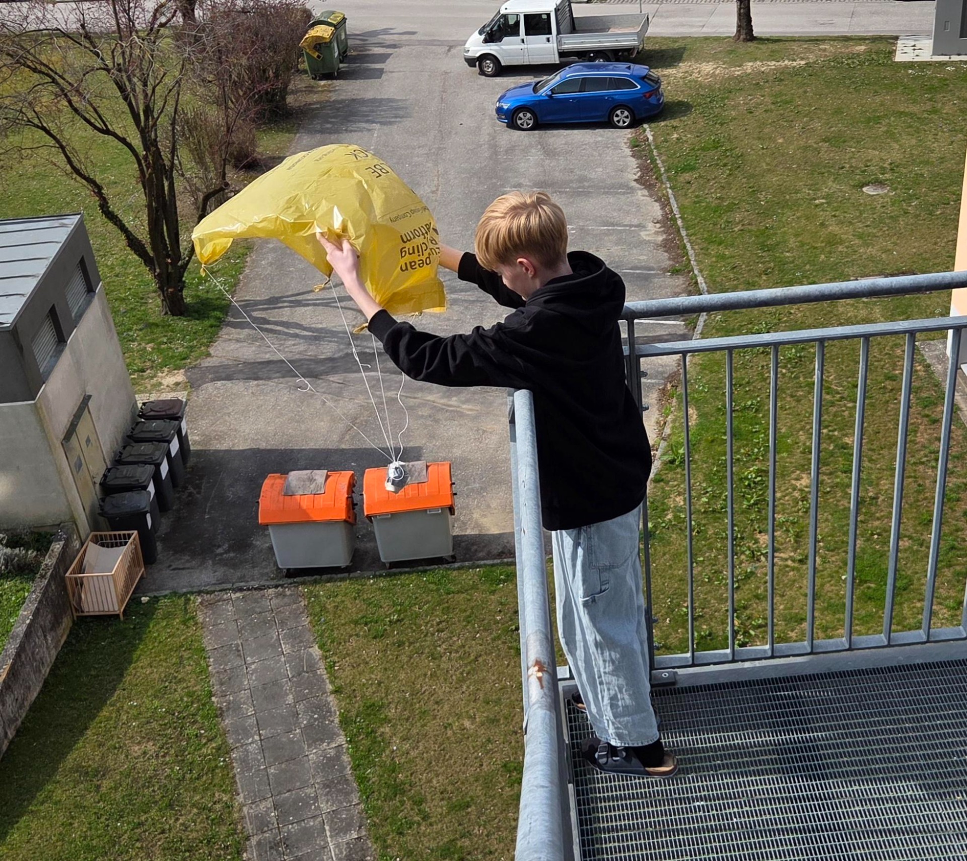 Rettet das Ei! Donnerstag, 26. März 2026 Die gestellte Aufgabe, ein rohes Ei mit Hilfe eines Fallschirms unbeschädigt landen zu lassen, wurde in Forschen und Experimentieren begeistert und kreativ gelöst. Teile den Artikel ⇐ zurück